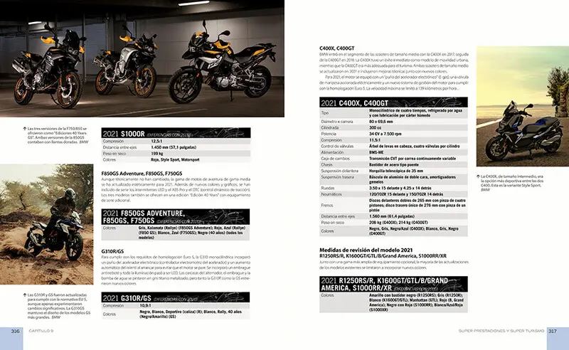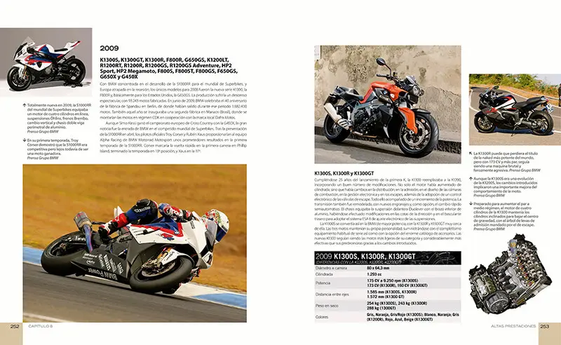 CUANDO TRAS LA PRIMERA GUERRA MUNDIAL le fue prohibida la producción de motores de aviación a la Bayerische Motoren Werke, ésta empezó a fabricar motocicletas, presentando la R32 en 1923. Sería el comienzo de una larga familia de innovadoras motocicletas que duraría más de 90 años. Con modelos icónicos como la RS255 Kompressor (ganadora en la Isla de Man),la R69S, la R90S, la R100RS, la R80G/S, la K1 ( ladrillo volador ), la R100GS París-Dakar, la R1100S, la S1000RR, la K1600GT,la F800GS y tantas otras, las BMW abarcan todas las categorías y tipos, desde las motos de altas prestaciones a las trail,sport-turismo,turismo de lujo, ciudadanas e incluso enduro.Motocicletas BMW, El Gran Libro, Todos los modelos desde 1923 recopila por primera vez en formato enciclopedia y escrito por el gran historiador de la moto Ian Falloon, esas grandes motocicletas y su historia. El libro cubre todos los modelos, por menores que sean, desde las icónicas biclindricas bóxer, al resto de modelos de uno,tres,cuatro y seis cilindros. De las históricas motos de carreras de los años 20 y 30 a las actuales Superbikes S1000RR, pasando por el increíble éxito de las series GS; desde la original R32 hasta las últimas bóxer refrigeradas por agua o las novedosas Superbikes. Tanto si lo nuestro son las bóxer refrigeradas por aire, como las series K o cualquiera de las otras asombrosas máquinas que BMW ha lanzado a lo largo de los años, este libro será una pieza esencial en la biblioteca de todo aficionado al mundo de la moto.
